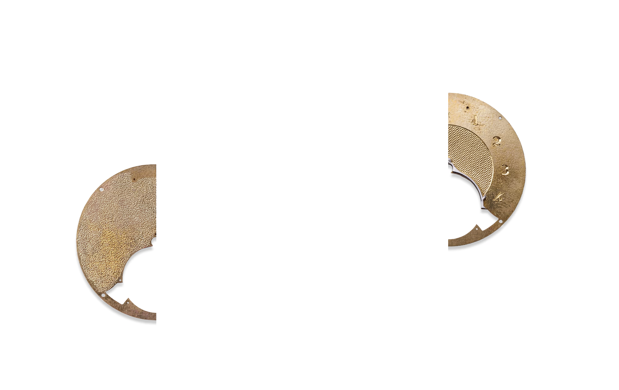 Hand-hammered and brushed dials with blued or black-polished numbers